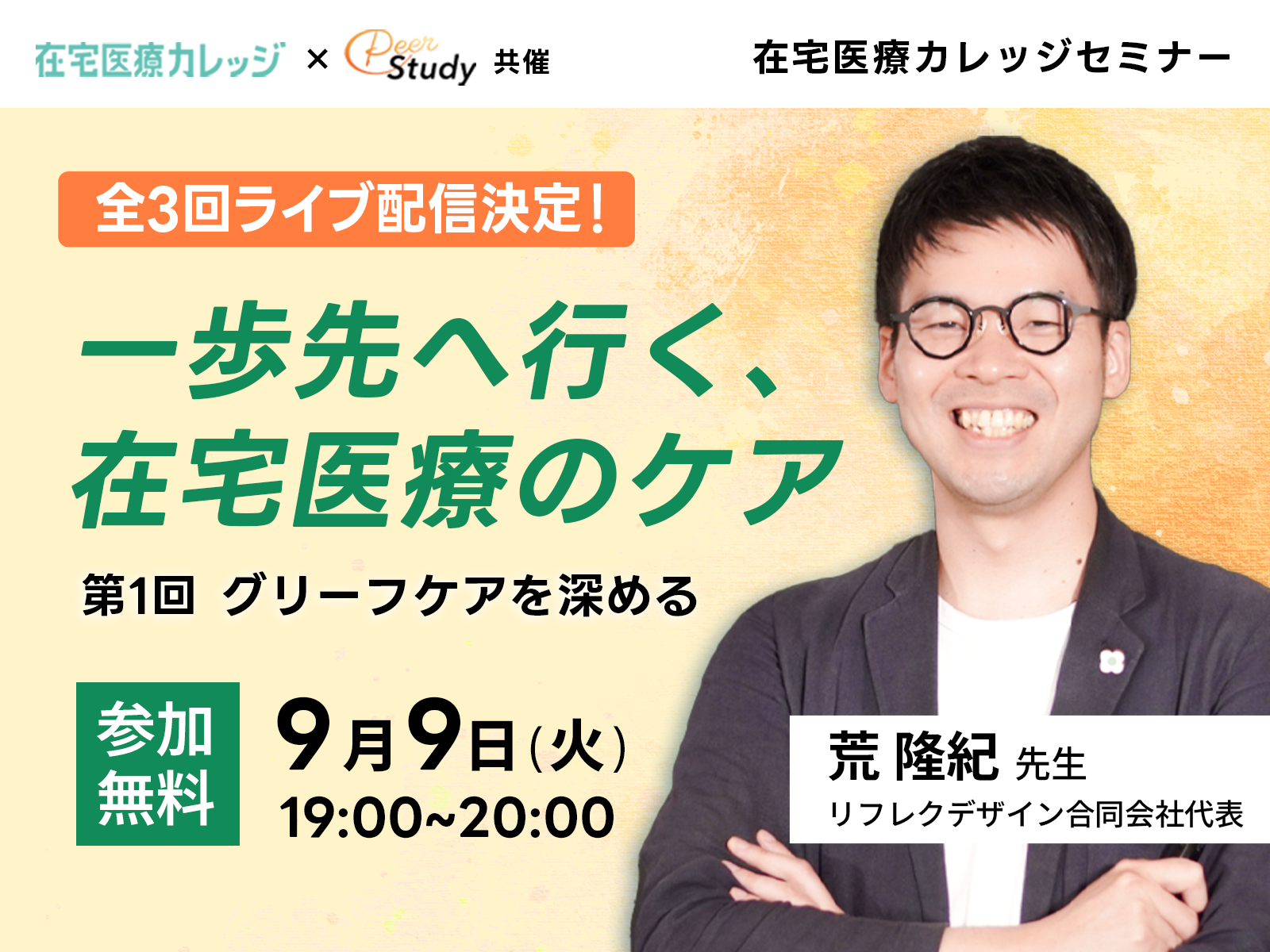 本セミナーでは、講師に家庭医療専門医の荒隆紀先生をお迎えし、診療やケアに直結する実践的な視点から、グリーフケアを深く学ぶことができます。