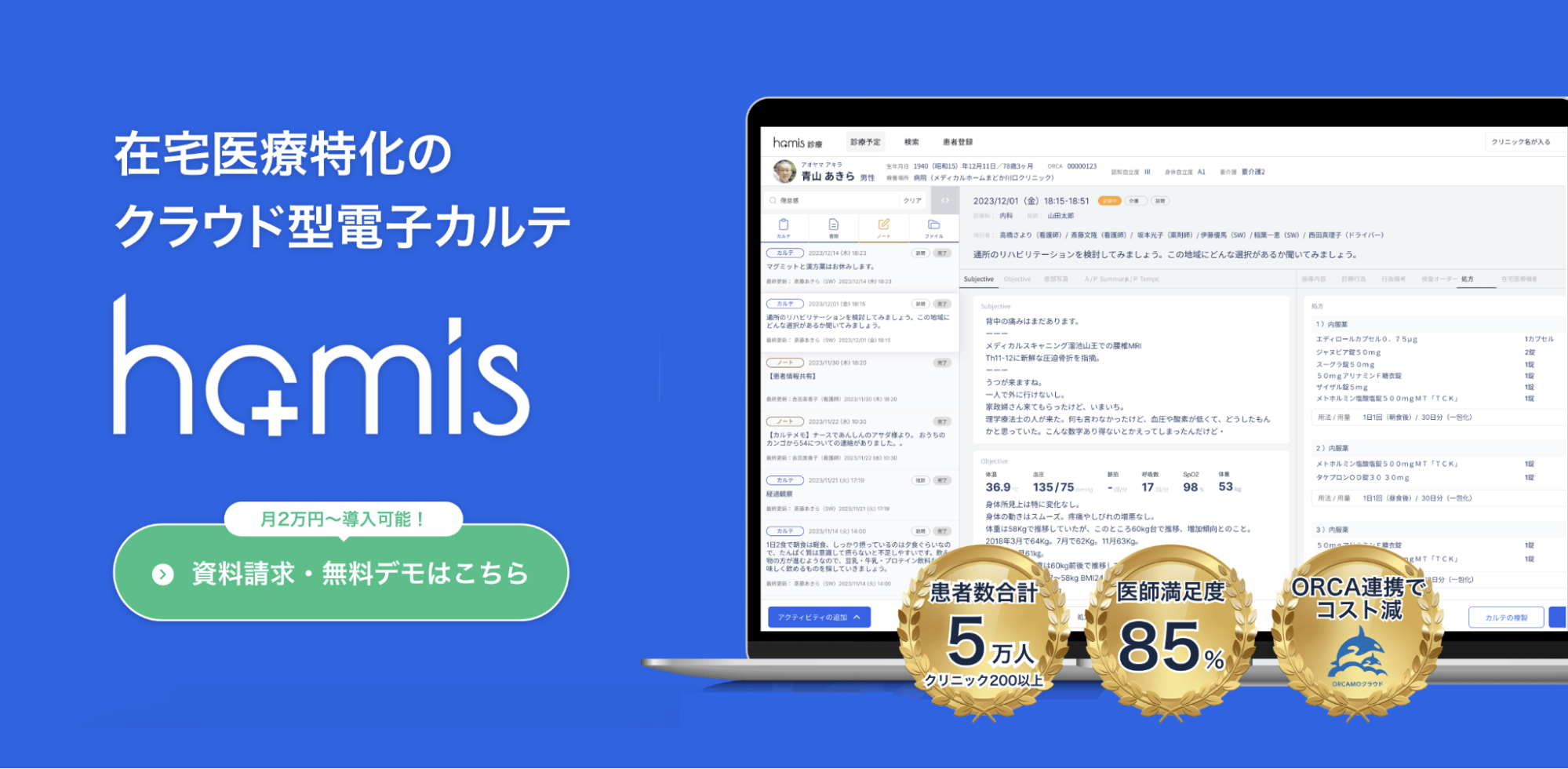 在宅医療に特化したクラウド型電子カルテです。