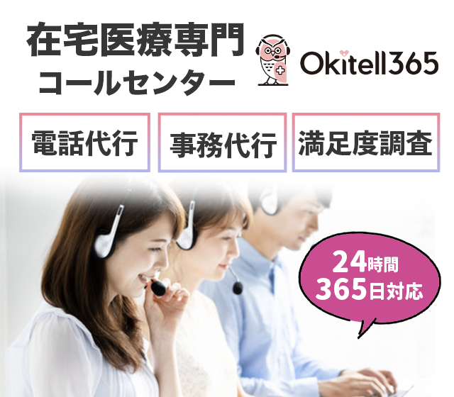 「Okitell365」は、在宅医療専門の電話代行サービスとして、業界では10年以上の長い歴史と実績を誇ります。在宅医療専門のコールセンターは競合が少なく、希少価値があると自負しております。