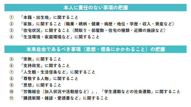 厚生労働省は「面接で聞くべきではない項目」を以下のように挙げています。
